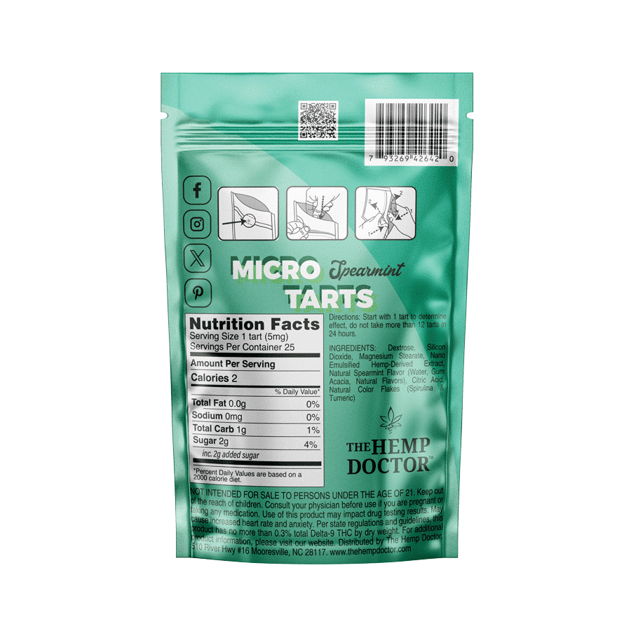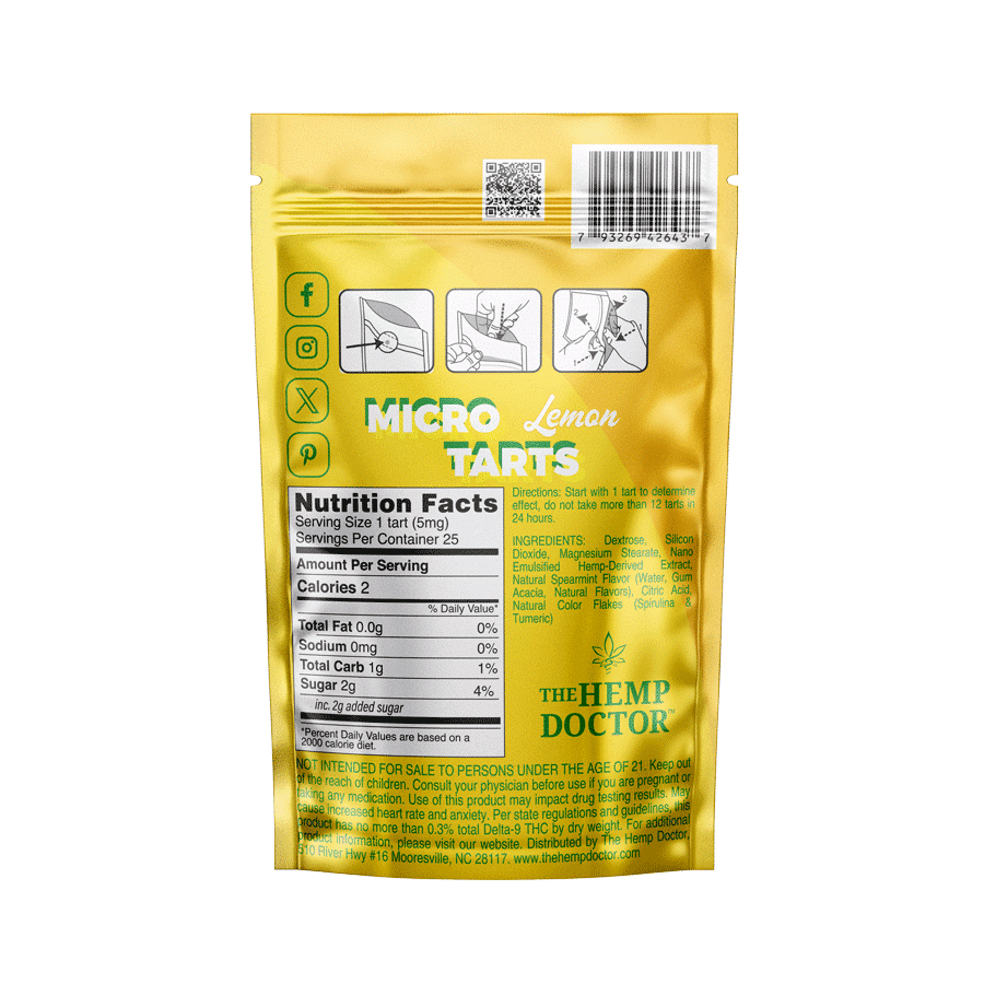 Microdosing has taken the world by storm and The Hemp Doctor is here to help you hack your life with this buzzing cannabis trend. Meet our Micro Tarts, a little product you can get big excited about. These bite sized pucks are reminiscent of our favorite childhood snack, sugary sweet, and dosed with just 5mg of D9 THC, for a THC edible experience that will let you get lifted while keeping it classy. Choose from classic lemonade, nostalgic root beer, or breath-freshening spearmint, all nano-emulsified for rapid-onset effects. Between the irresistible flavors and precision microdose potency, these tarts are the perfect choice to elevate your everyday wellness routine.