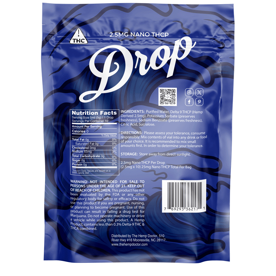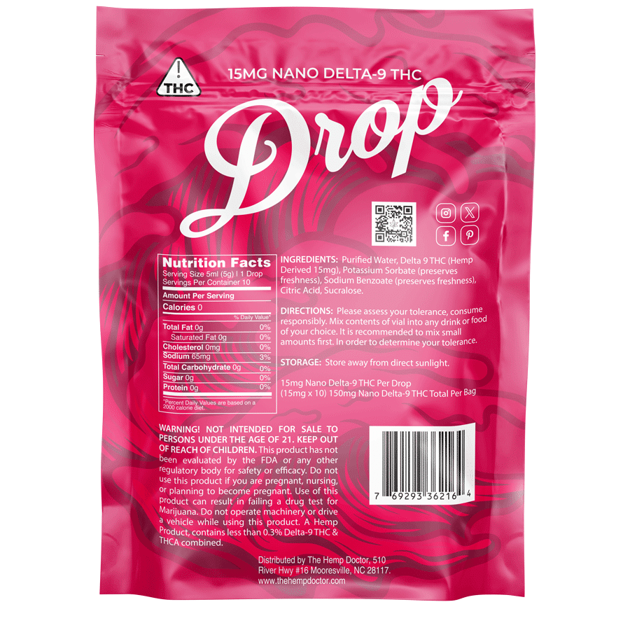 Elevate your daily routine with The Hemp Doctor’s DROP – Fast Acting Mixer. Whether you’re looking to unwind with Delta 9 or experience a more intense, euphoric feeling with THCP, our nano-emulsified formula ensures rapid effects you can feel almost instantly.