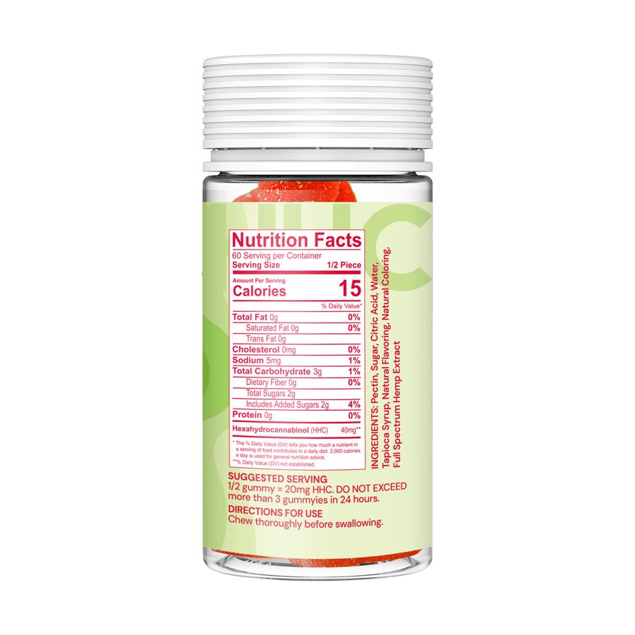 High Potency: Each gummy contains 20mg of HHC. This means that you can experience the unique benefits of HHC more quickly and effectively, without having to consume large quantities.